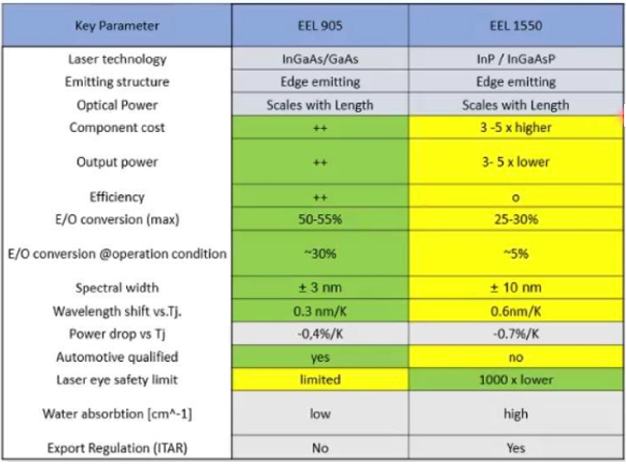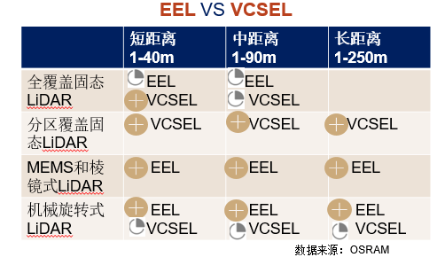 在905nm發(fā)射芯片方面,目前有905nm EEL和VCSEL兩種類型,瑞波認(rèn)為,兩者既競(jìng)爭(zhēng),又互補(bǔ),不過905nm EEL仍被認(rèn)為是未來激光雷達(dá)主流光源技術(shù)之一。