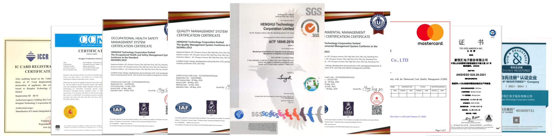 Supported by industry-leading hardware/software and a refined quality management system, HENGHUI holds 10+ global certifications including ITAF16949, CQM, ISO9001, ISO14001, ISO45001andCC EAL6+.These credentials validate compliance with international standards and high-security chip processing capabilities, enabling the delivery of premium products and services that consistently create value for customers.