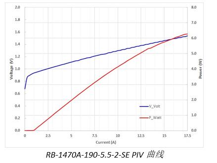本次發(fā)布的1470nm芯片型號(hào)為RB-1470A-190-5.5-2-SE,發(fā)光條寬190μm,工作電流15A,工作功率5.5W,光電轉(zhuǎn)換效率26%。